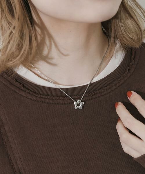 スウェットやTシャツなど、カジュアルなトップスの首元に合わせるだけで、さりげない女性らしさが加わります。