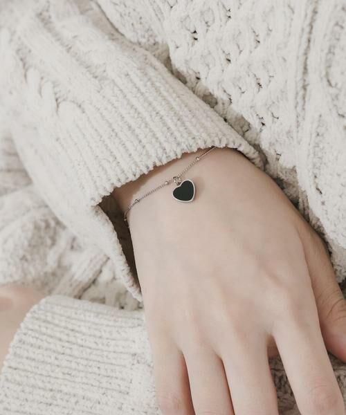 手元で小さく揺れる、ハートチャームが愛らしいブレスレット。