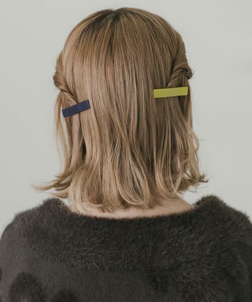 落ち着いたネイビーと差し色になるイエローの2色がセットになった、シンプルな長方形のヘアピン。