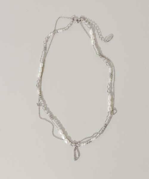 質感の異なる素材を組み合わせた、遊び心のあるデザインが魅力のネックレス。