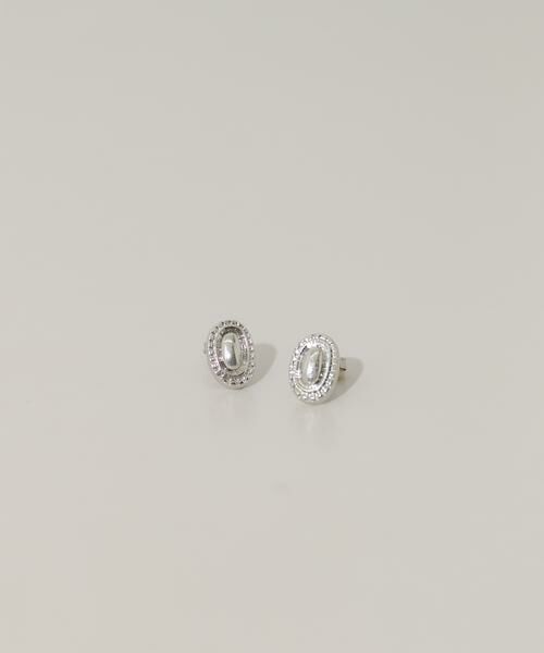 ぷっくりとしたオーバル型のシルバーパーツに細かいカッティングを施したコンチョデザインのピアス。