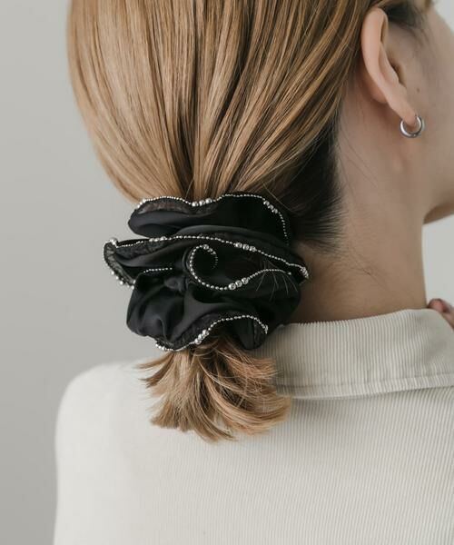 【縁取りチェーンが煌めく大人のボリュームシュシュ】