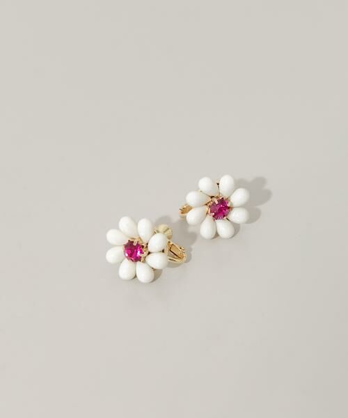 ぷっくりとした白い花びらに、鮮やかなピンクのストーンをセットしたキャッチーなデザイン。