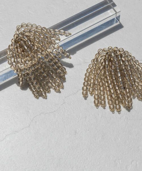 透明感あるビーズの中にも大人の落ち着きが垣間見える、ベージュカラーのビーズを採用。アクセサリーを主役にコーディネートを組みたくなるような、ぱっと目に留まるデザインに仕上げました。