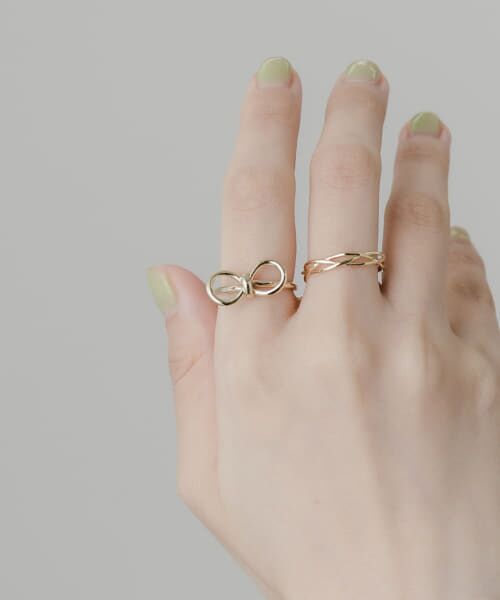 華奢なメタルラインとリボンのシルエットの組み合わせが、可愛らしさと上品さを兼ね備えた仕上がりに。