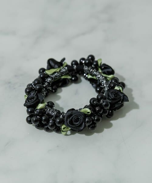 ブラックカラーのビーズでボリュームを加えたつぶつぶなディテールがフェミニンさを抑え、ニュアンスのあるヘアスタイルにアップデートしてくれます。