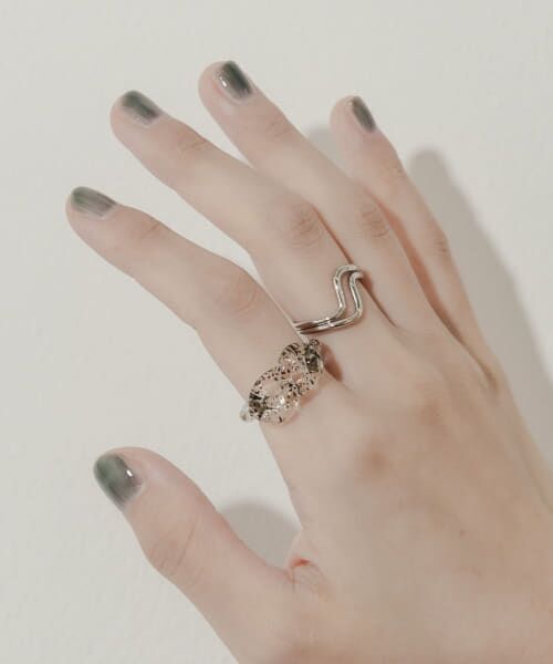 結び目デザインがポイントのクリアリングと、波打つシルエットがおしゃれなリングの2点をセットに。