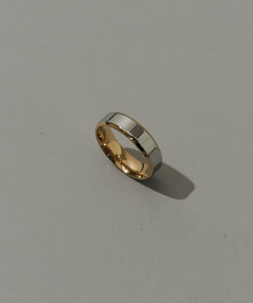 ゴールド×シルバーのミックスカラーがイマドキな手元を演出するシンプルリング。金属アレルギーの方でも手を出しやすいサージカルステンレス素材を採用したアイテム。お風呂など水に触れるシーンでも腐食に強く錆びにくいのが特徴です。