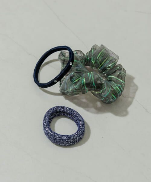 ラメ糸を織り交ぜたヘアゴムや、等間隔にクリアビジューを埋め込んだヘアゴムもアイコニックな印象◎