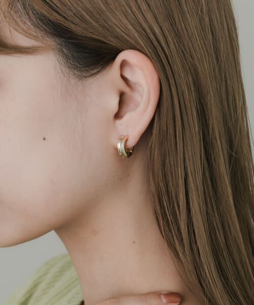 さりげないサイズ感とユガミを効かせたニュアンスのあるディテールがこなれた耳元を演出してくれるイヤリング。