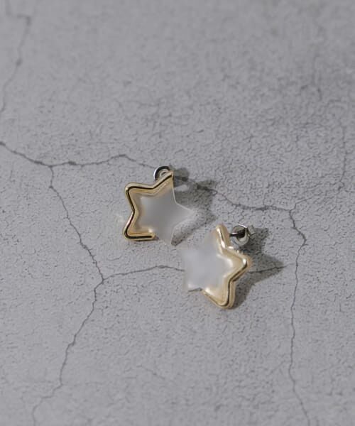 マット×クリア素材のモチーフに、ゴールドの縁取りを加えた遊び心のあるピアス。