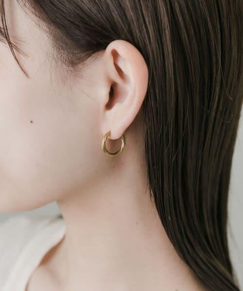 シンプルなミニサイズのフープピアスをツイストデザインでご用意。