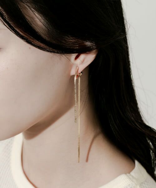 なめらかなスネークチェーンの輝きが美しいロングイヤリング。