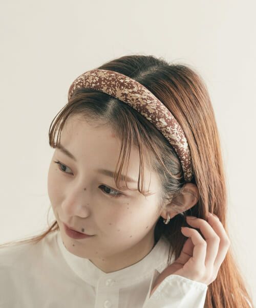 トレンドのぷっくりフォルムに仕上げたプリントカチューシャ。