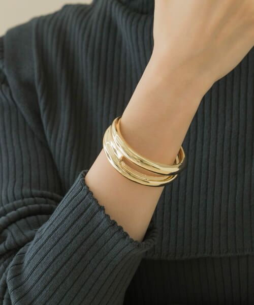 プックリとしたボリューミーなシルエットがアクセントのある手元を演出してくれるダブルラインデザインのバングル。
