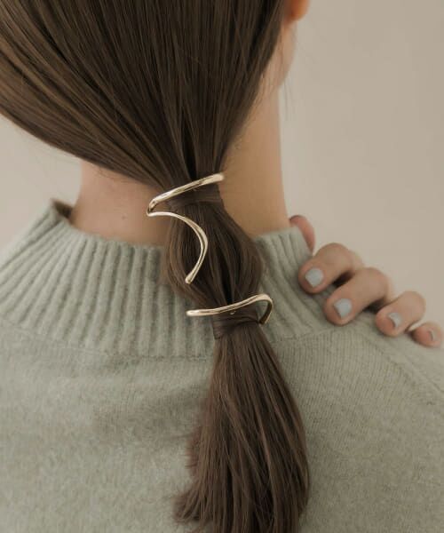 独特なシルエットが華奢ながら存在感を放つヘアーカフのセット。