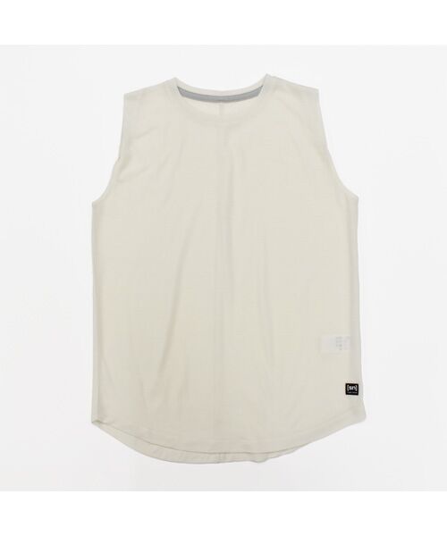 日本のユーザーの声から生まれ、本国でも採用されたデザインのタンクトップ。大きな動きでも胸元が気にならない、きれいな開きのネック周りが特長です。パターンにさまざまな工夫があり、腕周りのカッティングも開きすぎないようにしつつ、動きやすさにも配慮しています。また肩の部分は生地を重ね、着たときにきれいに見えるようにデザインしています。身頃はゆったりと裾にかけて広がり、ラウンドした裾はお尻が隠れるくらいの絶妙な丈感。スポーツ時だけでなく、タウンでも楽しめる、新しいスタンダードです。
