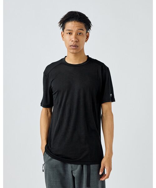 あえてシンプルに、素材の良さを表現した無地Tシャツ。定番のクルーネックTシャツは、さまざまなシーンで活躍!首回りはリブを廃した、すっきりとスタイリッシュな仕様。肩にパネルの切り替えがある立体的な造り。左袖のさりげない[sn]ロゴがアクセントに。ADVANCED WOOL140は、高級素材・メリノーウールを50%使用。天然素材ならではの吸湿・放湿効果や防臭効果を備え、家庭での洗濯やケアも簡単。素材の持つ独特の光沢や、メランジカラーは味わい深く、リッチな味わいが楽しめます。単品で着てもきれいなシルエットなので、色違いで欲しくなるアイテムです。