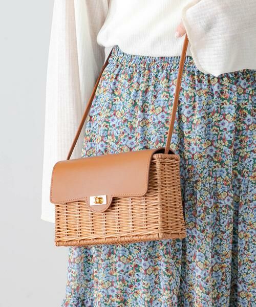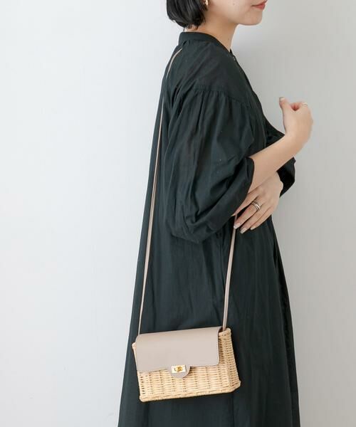 素材コンビのデザインがポイントになった、ショルダーバッグ。夏コーデをブラッシュアップしてくれます。
