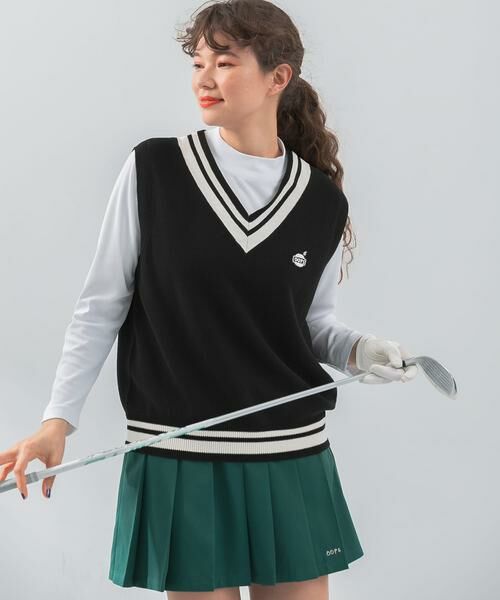 モックネックのトップスやポロシャツと合わせることでゴルフ仕様に。