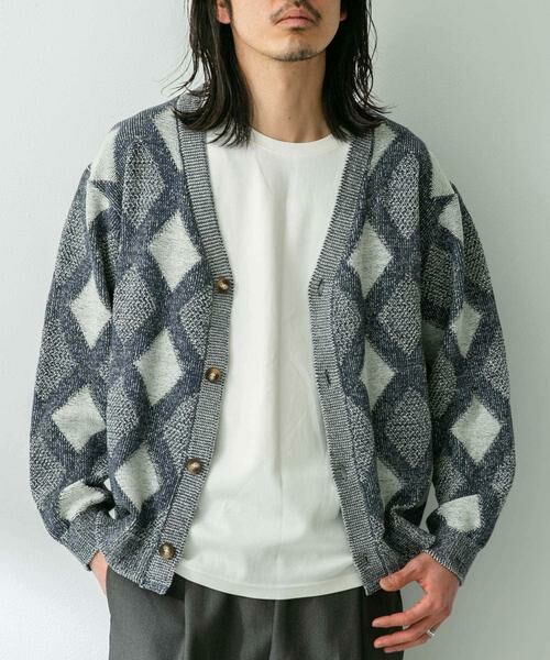 立体的な幾何学模様が目を惹くジャガードカーディガン
