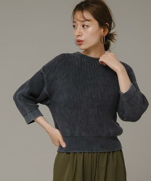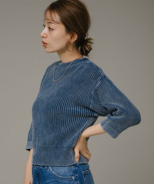畦編みのニットに、ピグメント加工を施した七分袖のニット。