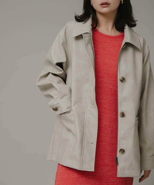 程よいハリ感とやわらかさを併せ持つ、独特の風合いが魅力のフェイクレザーブルゾン。