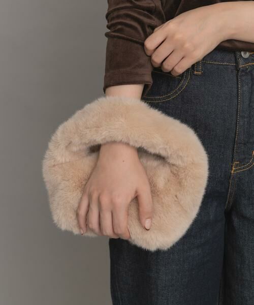 ころんと愛らしいシルエットのフェイクファーバッグ。ミニサイズながらマチがしっかりあるので、スマートフォンや三つ折り財布など、必要な荷物の出し入れもスムーズ◎。シンプルながら存在感のあるルックスが、スタイリングにアクセントを添えてくれます。
