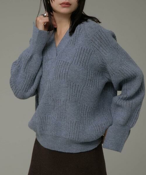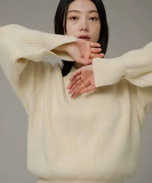 スクエアパターンの編み柄が目を引くニットプルオーバー