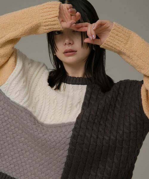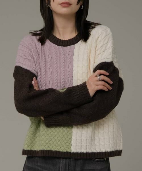 キャッチーな配色と柄編みの組み合わせが目を引く一着。