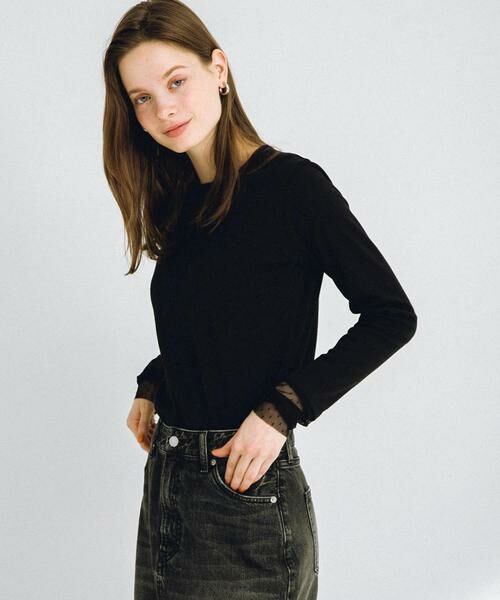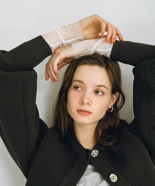 袖口から切り替えたドット柄ソフトチュールのデザインがポイント。
