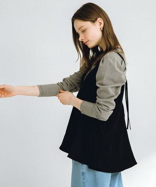 フレアシルエットになっているのでインナーはタイトなものがおすすめ。ボトムもボリューム感のないすっきりとしたサイズ感のものと好相性◎