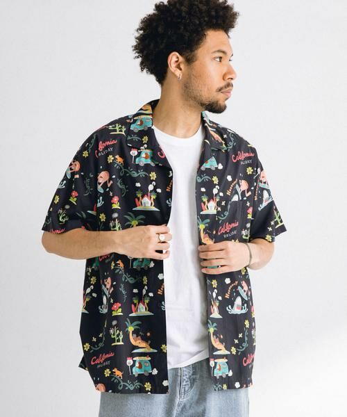 遊び心あふれる総柄デザインが目を引くアロハシャツ