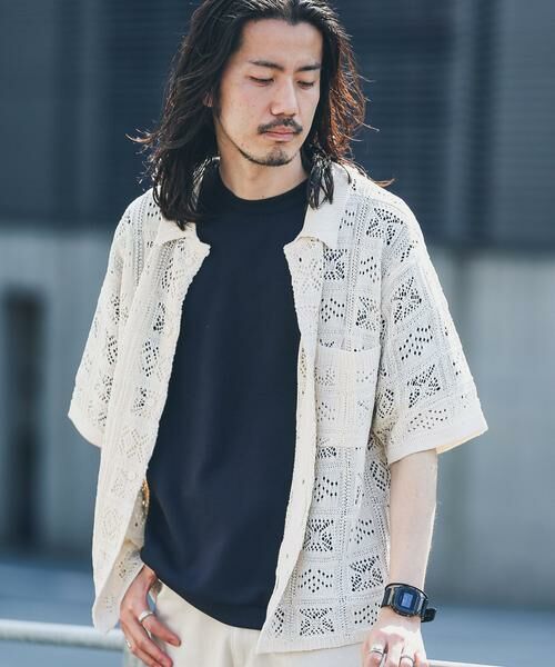 旬なレース編みのデザインが、トレンドライクなコーディネートに仕上げてくれるショートスリーブシャツ