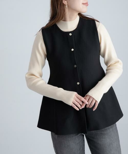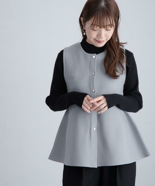 ウエスト部分から立体的に広がるペプラムシルエットがポイントのニットベスト。