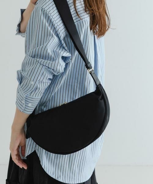 弱撥水性のあるカジュアルなナイロン素材に金具のゴールド使いが女性らしいボディバッグ。