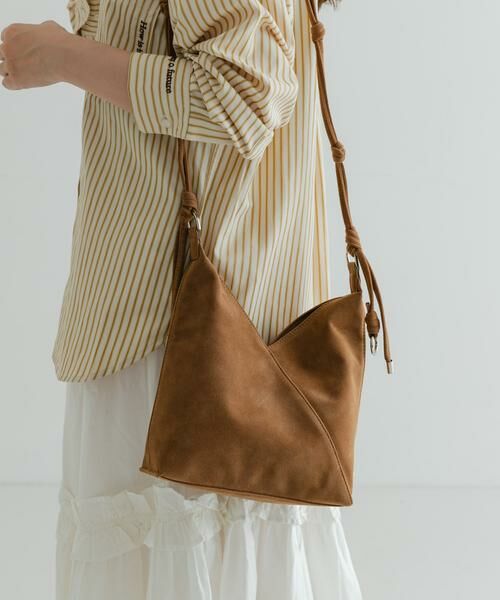 風合いのあるスエードライクな生地が、シーズンムード漂う一品。金具でアレンジを加えた特徴的なハンドルが、シンプルなルックスにアクセントを添えます。さりげなく付属したカラビナに、チャームをつけて旬なアレンジが可能なのも嬉しいポイント。