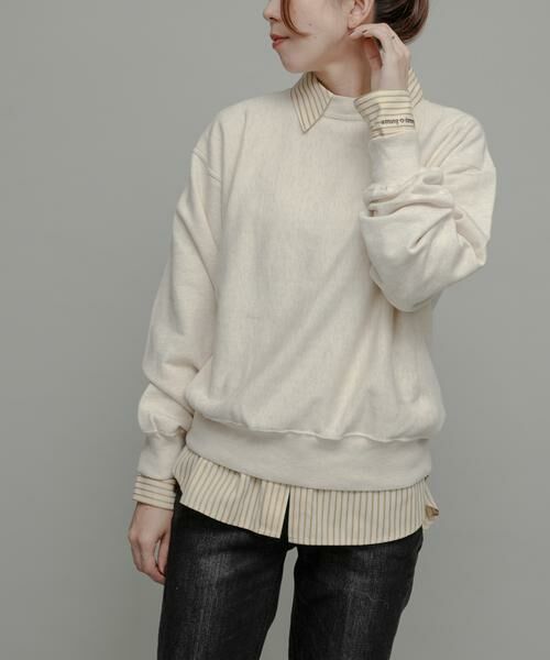 Champion(チャンピオン)のスウェットシャツは、「ザ キング オブ スウェットシャツ」と評されるほど、世界中の多くのファンに愛されてきました。チャンピオンを代表する製法の「REVERSE WEAVE(リバースウィーブ)」。環境に配慮して生産されたサステナブルなアメリカ綿100%の裏毛素材を使用した「REVERSE WEAVE 10oz. French Terry(リバースウィーブ 10オンス フレンチテリー)」シリーズの、柔らかい手触りが特長のクルーネックスウェットシャツです。本来は縦方向に使われる生地を横方向に使用する「REVERSE WEAVE」製法によって縦の生地の縮みを防ぐと同時に、両脇に「EXPANSION GUSSET(エクスパンションガゼット)」を付けることで横の縮みへの影響を少なくし、動きやすさに配慮しています。身幅、肩幅にゆとりを持たせたリラックスフィットで、襟元はリブのガゼット仕様。製品洗い加工により、着用の当初から着慣れた風合いが味わえます。左胸にボディと同色のChampionロゴ刺繍入りです。3シーズン着用できるユーティリティアイテムです。