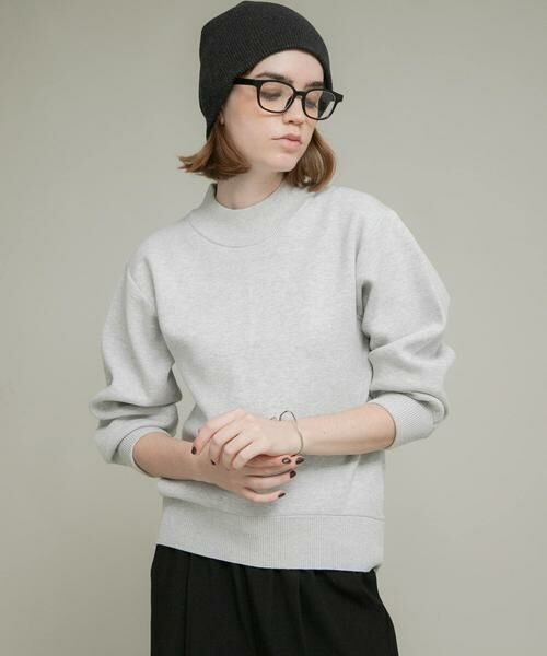 モックネックスウェットライクニットプルオーバー