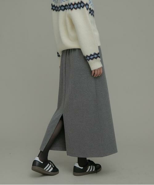 冬に嬉しい蓄熱性効果と静電気防止加工を施したジャージ素材を使用し、軽い履き心地ながらに暖かさが保たれるスカート。