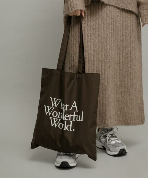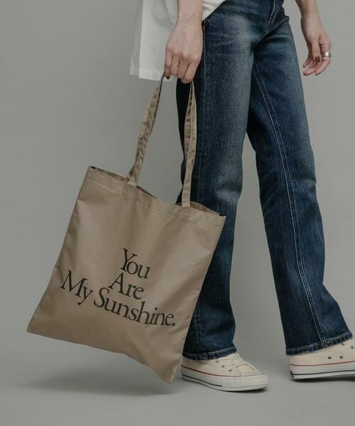 カラーごとに異なるメッセージをプリントした大きめのトートバッグ。マチなしですっきりと持つことができます。