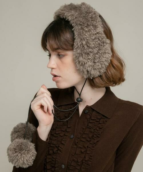 もこもこ素材が季節ムードを高めるイヤーマフ。結び目についたボンボンが可愛らしさをさらに演出。【helen moore / ヘレンムーア】