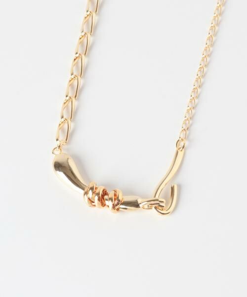 ニュアンスある形状にリングパーツをあしらった、Flow coilシリーズのチョーカー。二種のチェーンで構成された表情のある作りで、オリジナルの留め具も引っかけタイプにしており、デザインの一部になっています。スタイリングにプラスするだけで、トレンド感のあるスタイルが完成します。
