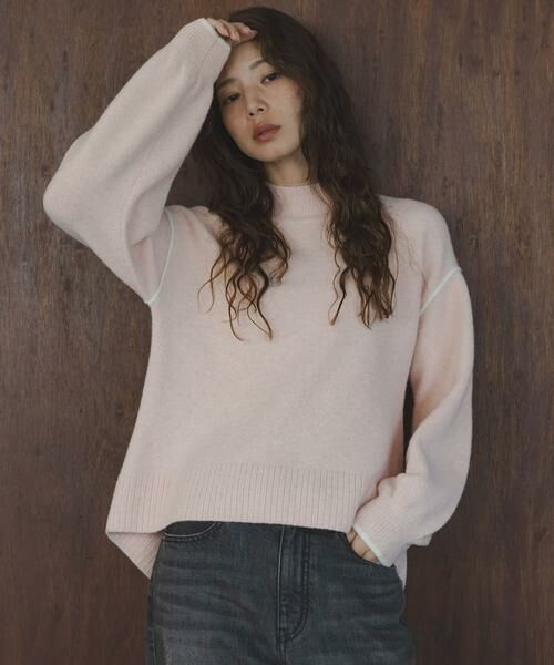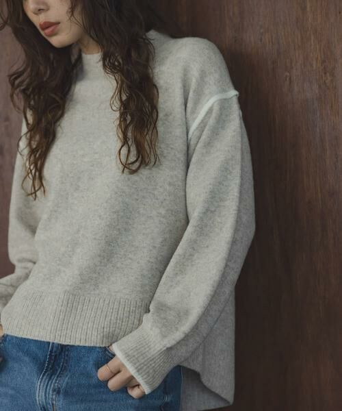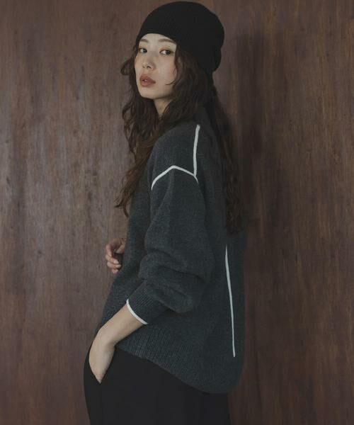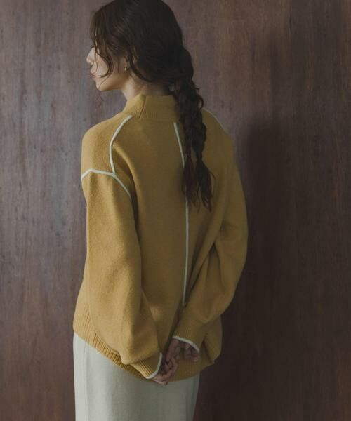 どんなボトムスのシルエットともバランス良く着こなせる、さりげない配色シームデザインとバックラウンドデザインがポイントのニットプルオーバー。