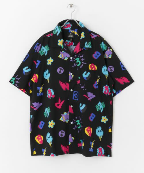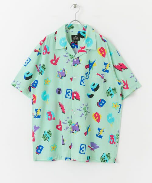 肩幅、身幅、袖幅にゆとりを持たせたシルエット。 インクジェットプリントによるオープンカラーシャツ。 レーヨン60%、コットン40%のオリジナルレシピによる生地は、しなやかで独特のドレープ感が特徴。 ブランド名の由来のひとつでもあるニューヨークで結成された90sを代表するHIPHOPグループをオマージュ。 それぞれ個性が異なるMAGIC NUMBER 3の文字は、90sを連想させる様々な要素をサンプリングしたオリジナルグラフィック。