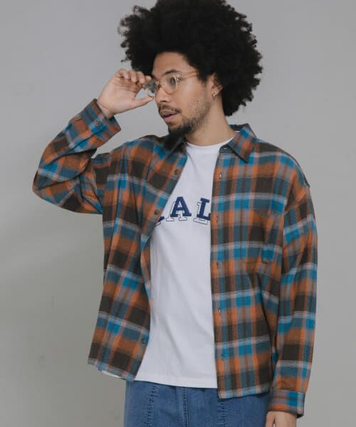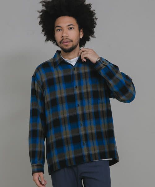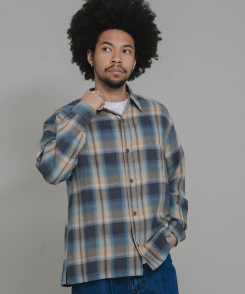 昔ながらの起毛したネルシャツはカットソーに羽織るだけで様になります。