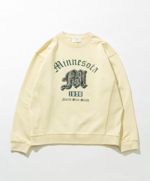 ヴィンテージショップで見つけたようなロゴスウェットをイメージし、現代に再現