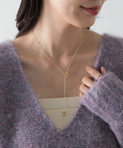 オープンハートのパーツを使用したマンテルタイプのネックレス。Coil部分は移動させて使用出来ますので、色々な位置にもってきてアレンジして使うことが可能です。すっきりとしたY字のシルエットがスタイリッシュさを演出してくれます。