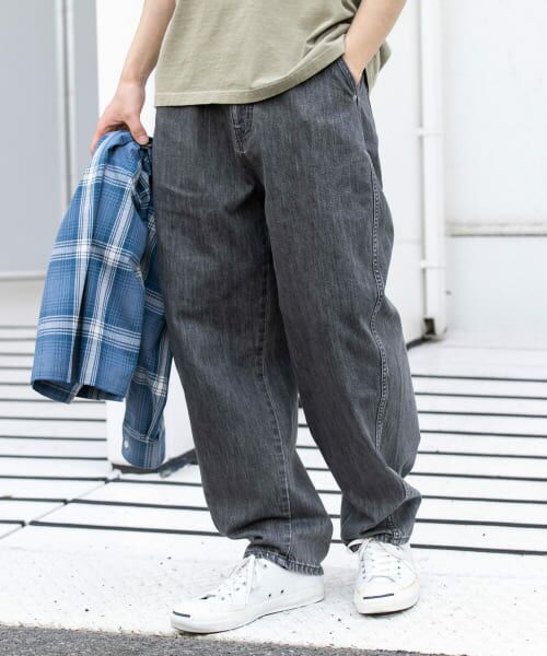 ゆったりとしたバギーデニムで、腰には丸みをつけ裾に向かって真っすぐ落ちるシルエットが特徴のバレルパンツ。