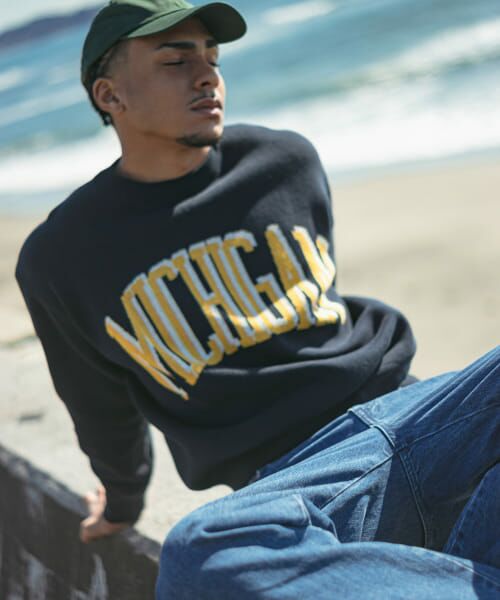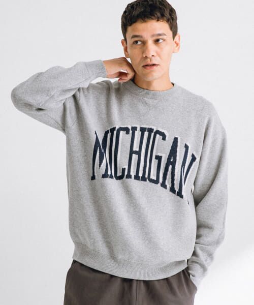 古着屋で見つけたようなカレッジロゴスウェットをニットでイメージ